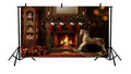 TRADITIONAL CHRISTMAS FIREPLACE AND STOCKINGS - PRINTED BACKDROP