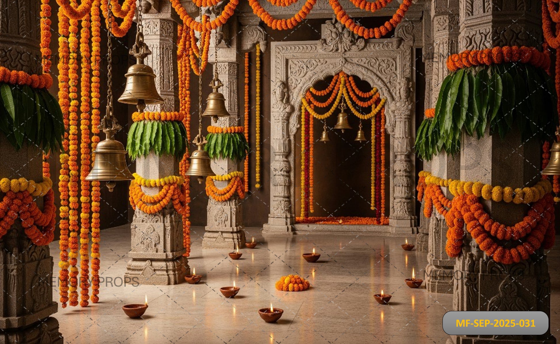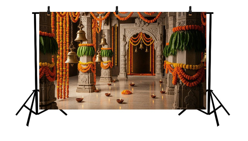 A radiant backdrop adorned with diyas, marigolds, and festive motifs, perfectly capturing the timeless spirit and cultural warmth of Diwali celebrations.