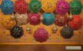 A festive and colorful backdrop featuring handcrafted traditional umbrellas, floral garlands, and intricate ethnic patterns, bringing a royal Indian charm to weddings, haldi, mehendi, and cultural celebrations.