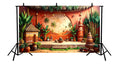 Bring warm, earthy elegance to your décor with the Tropical Desert Village with Palm Trees and Traditional Pottery Printed Backdrop. Featuring a serene desert village scene accented by swaying palm trees and authentic traditional pottery, this backdrop blends tropical charm with rustic heritage. Perfect for cultural celebrations, themed parties, destination-inspired events, boho setups, and artistic photo shoots, it’s printed in high resolution with natural textures and sun-washed tones for visually rich, atmospheric photos.