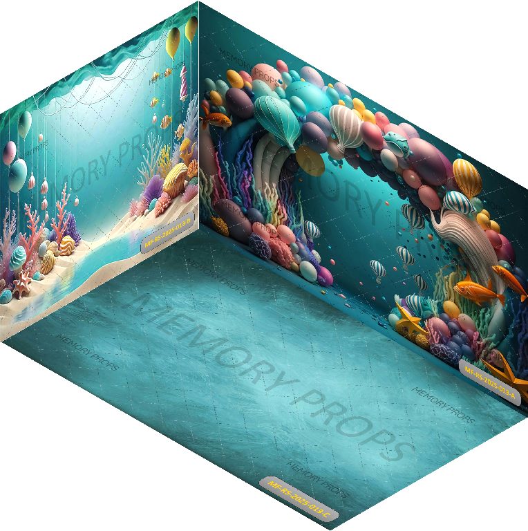 Dive into an underwater wonderland filled with shimmering waves, playful sea creatures, and vibrant coral details! This enchanting room set backdrop is perfect for mermaid-themed portraits, ocean-inspired birthday shoots, and whimsical underwater adventures bursting with color, imagination, and aquatic charm.
