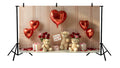 VALENTINE TEDDY BEAR FAMILY WITH RED HEART BALLOONS, ROSE BOUQUETS, AND LOVE NOTES - PRINTED BACKDROP