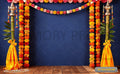 VIBRANT GUDI PADWA FESTIVAL STAGE WITH BLUE MATTE WALL, LUSH MARIGOLD GARLANDS, AND SYMMETRICAL GUDIS - PRINTED BACKDROP