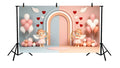 WHIMSICAL VALENTINE CUPID SET WITH PASTEL ARCHWAY, BALLOONS, AND WINGED ANGELS - PRINTED BACKDROP