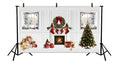 Bright, clean, and beautifully festive, the White Wood Panel Holiday backdrop brings a cozy seasonal charm to any photo setup. Featuring rustic white wooden panels adorned with subtle holiday accents, this design balances modern minimalism with warm Christmas spirit. Soft string lights, winter greens, and gentle pops of red create a welcoming scene that photographs beautifully.