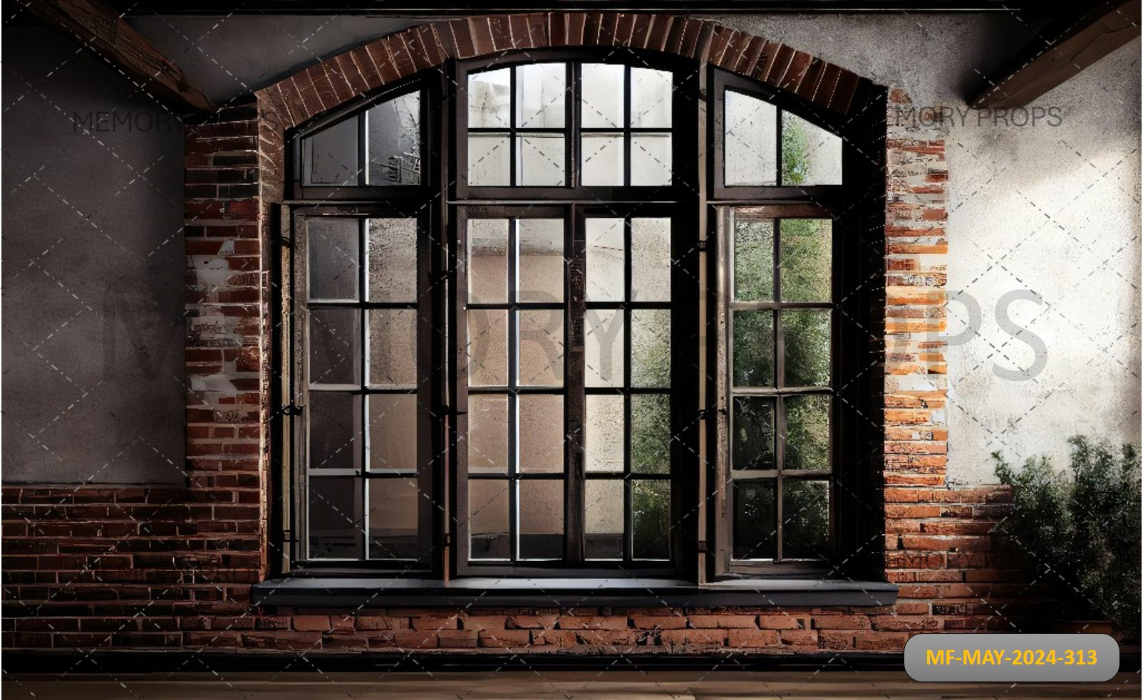 WINDOW FRAMES ATTACHED TO BRICK BUILDING - PRINTED BACKDROP